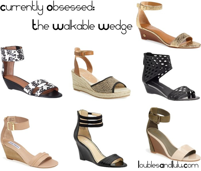 I love sky high wedges in the summer as much as the next girl, but there are some days that call for a lower, more walkable wedge. For example, an afternoon spent with my toddler, when I know I might be required to break into a sprint at any given moment! Or, a day walking around browsing shops or sightseeing. I have been on the lookout for wedges that are not-so-high, and these are some of my favorite ones that I have come across lately. Click on the items above and below for product information…