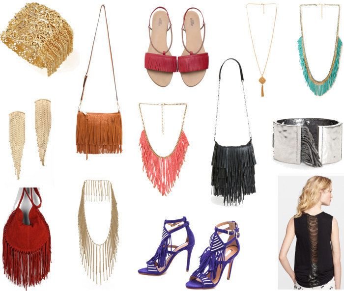 As a child of the 80’s and 90’s, the very first time I saw Ferris Bueller’s Day Off, I fell in love with Sloane Peterson’s white leather fringe jacket. And, her high-waisted paper bag waist shorts, but that is a whole other blog post! I remember telling my mom that I needed that jacket! Ever since then, I have been a fan of fringe. It goes in and out of style (or does it really, in the southwest?), but every time it comes back, I gravitate towards it. I especially like it as an element in accessories. A little fringe goes a long way. I did end up getting a white faux leather fringe jacket, and I wore that thing out…yikes! The pieces featured here are great, updated ways to wear fringe. Click on the images above and below for product information…